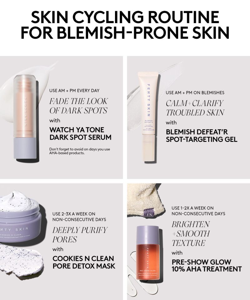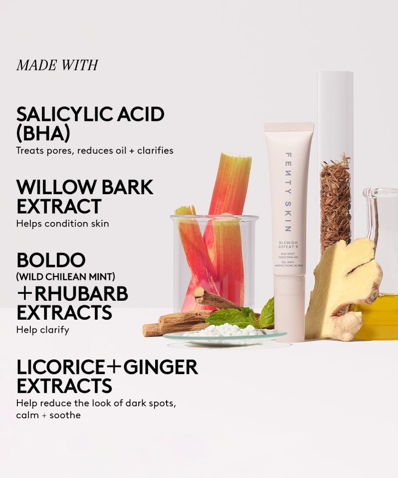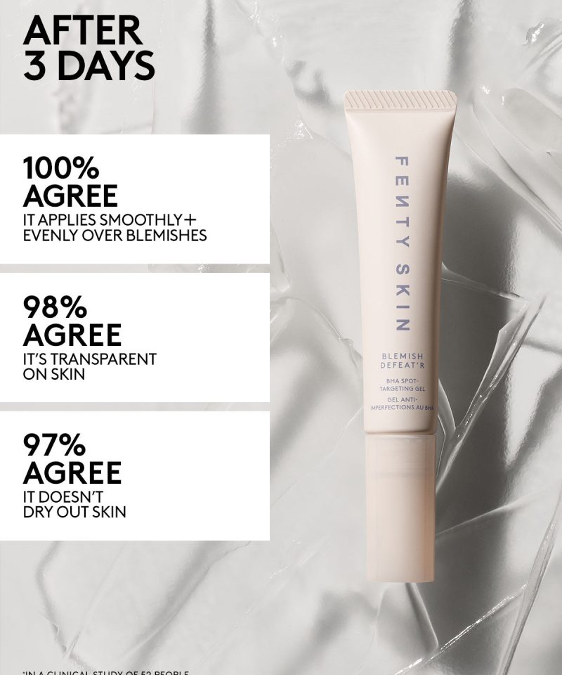 Discover Fenty Skin’s Salicylic Acid spot-targeting gel fights blemishes. clarifies skin and reduces surface oil. Its unique gel texture dries down quickly and works perfect canvas for makeup.