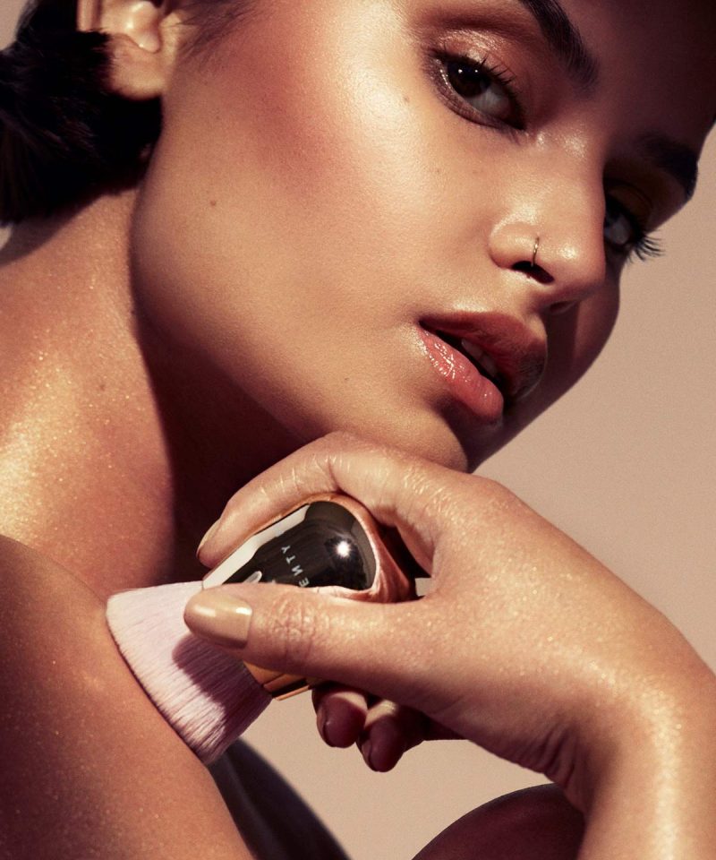 A multipurpose face and body kabuki makeup brush with a custom angled design for blending liquid and powder formulas. Perfect size for applying body makeup with enough precision to apply face makeup too.