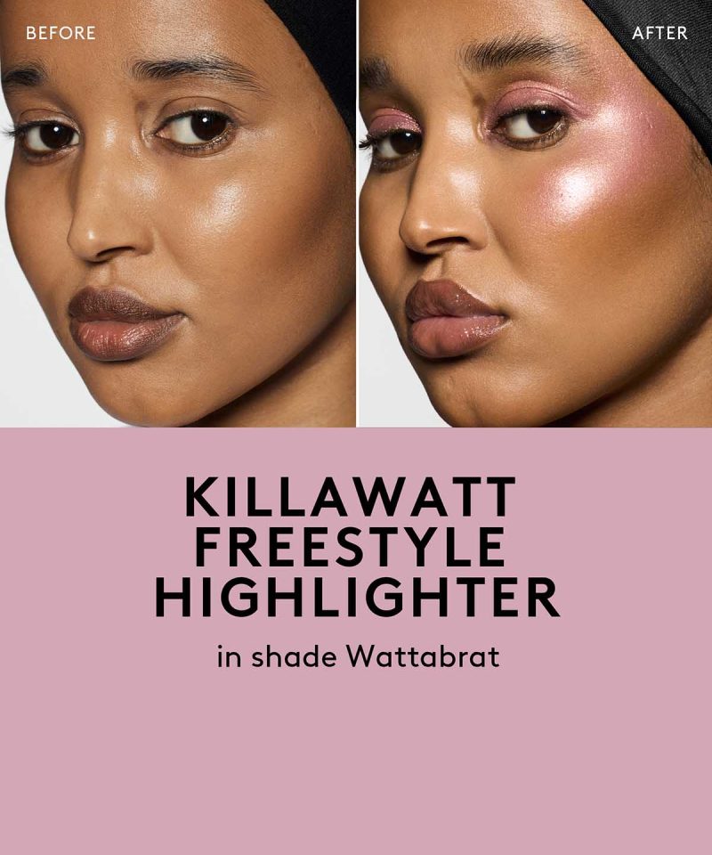 Take your mini Gloss Bomb Lip Luminizer. mini Killawatt Freestyle Highlighter and full-size Hella Thicc Volumizing Mascara on all your adventures. If you’re looking for juicy lips. endless ways to glow and big. bold lashes—this set’s got you covered.
