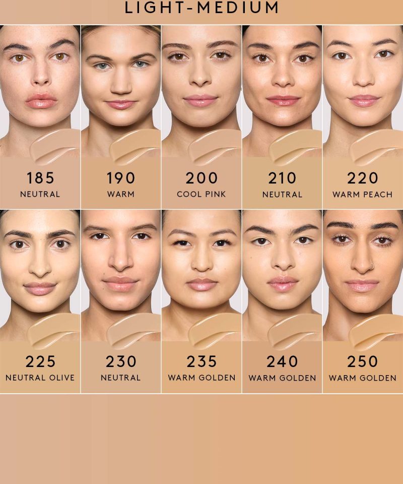 Step into your best light. A longwear. medium coverage foundation that gives golden hour glow all day long and stays fresh. It hydrates. brightens and improves skin tone both instantly and over time. while resisting sweat. humidity and transfer. This lightweight. waterpoof formula instantly reduces the appearance of shine and gives a whole new kind of radiance. This is just-right. notch-above-natural luminosity in a bottle.