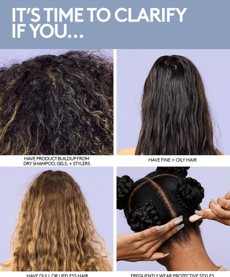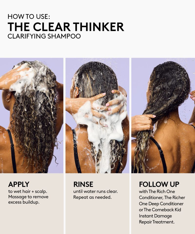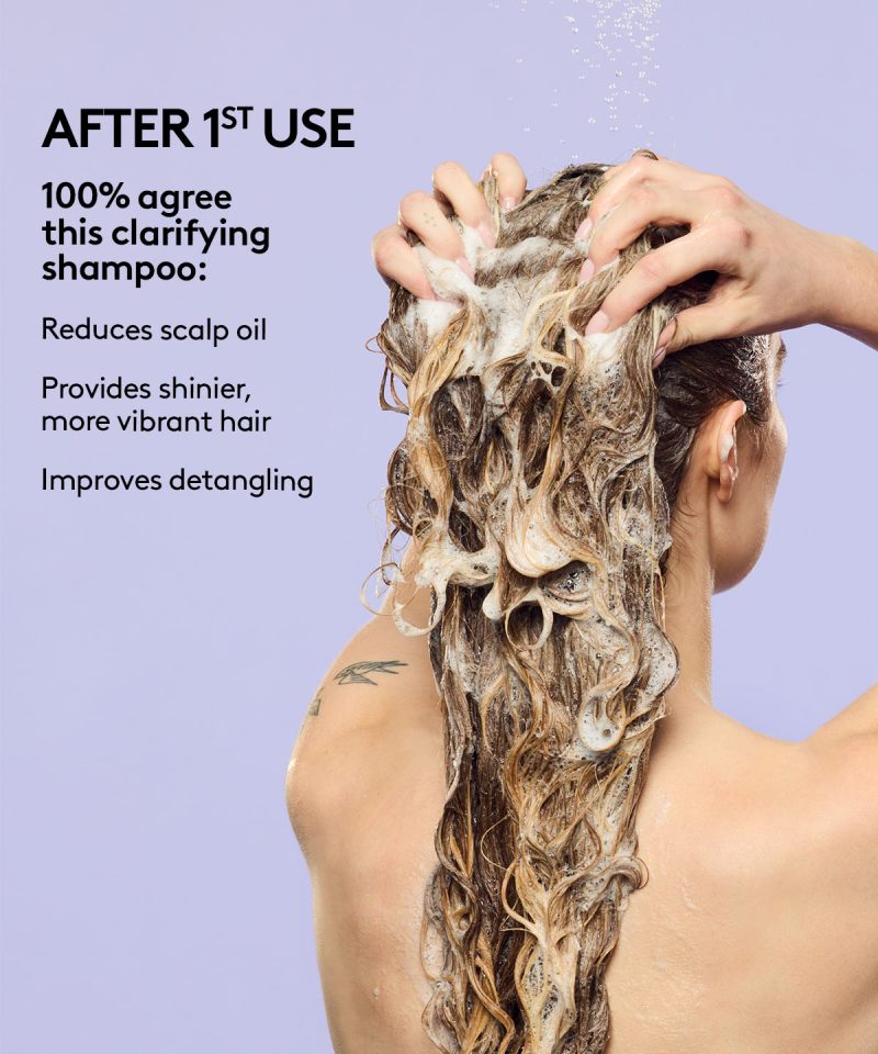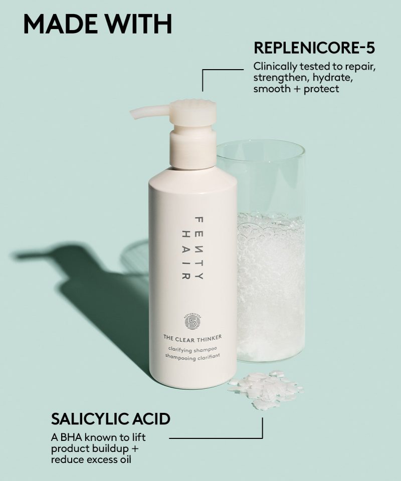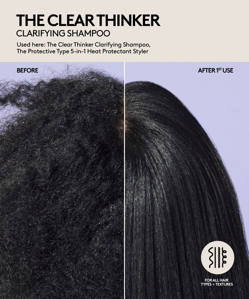 Cut through the buildup with a clarifying shampoo that won’t cloud your judgement. This gentle. color-safe clarifying shampoo gets to the root of it all. easily removing product buildup. excess oil and dirt without stripping your hair. The Clear Thinker helps provide a clean slate for weightless. bouncy styles. Infused with naturally derived Salicylic Acid and fruit-derived Pectins. And it only makes sense that we included our proprietary Replenicore-5 complex to repair splits ends and reduce breakage. Clear your head and start fresh.