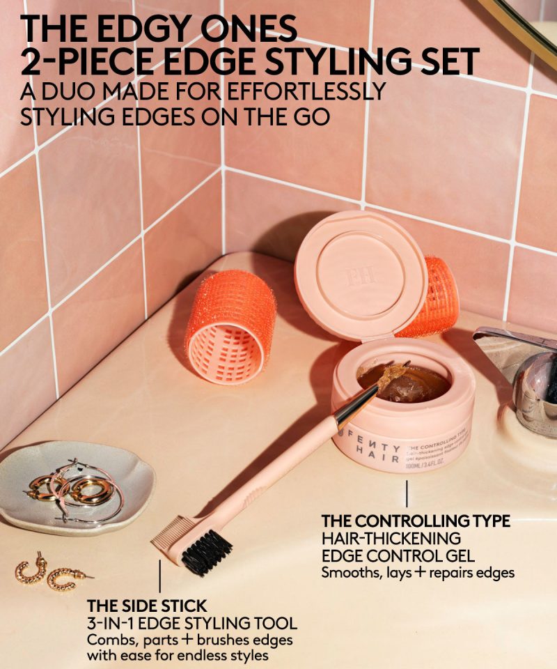 Keep things fun with a duo made for effortlessly styling edges on the go. Lock your edges and styles into place with The Controlling Type Hair-Thickening Edge Control Gel. a high hold gel that works overtime to protect + repair. Then smooth baby hairs. swirl strands + swoop edges with the help of The Side Stick 3-in-1 Edge Styling Tool. the most lux’d up. ergonomic styling tool.