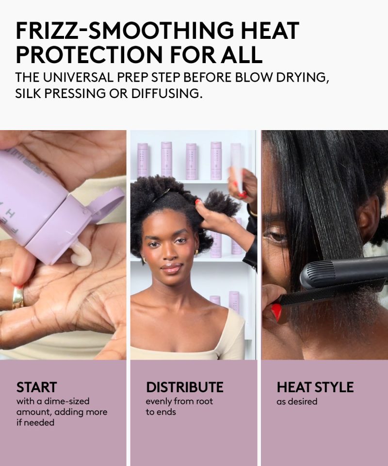 The only frizz-smoothing heat protectant styling cream you need for silk presses. blowouts + diffusing with up to 450°F of heat protection + always-on repair.