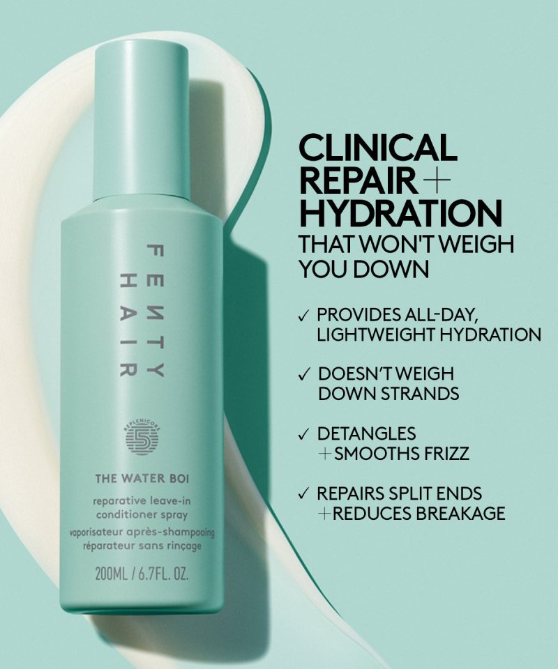 A lightweight. multitasking. reparative leave-in conditioner spray that provides all-day hydration. detangles. smooths frizz. softens + refreshes strands.